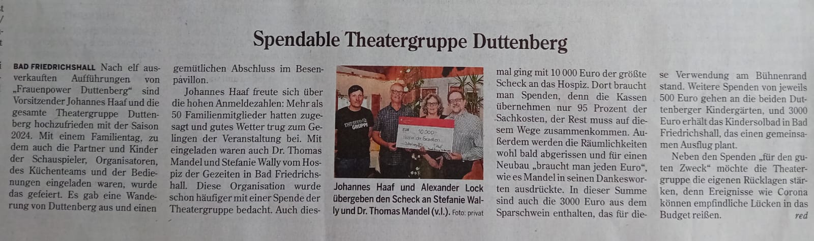 Auch wir waren dabei und wurden mit 1.000 Euro für die Anschaffung von Fleecejacken für das Pflegepersonal des Hospizes unterstützt.