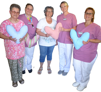 Jutta Schick (Dritte von links) übergab für die Reisacher Landfrauen das 100. Herzkissen an Barbara Jung und das Pflegeteam